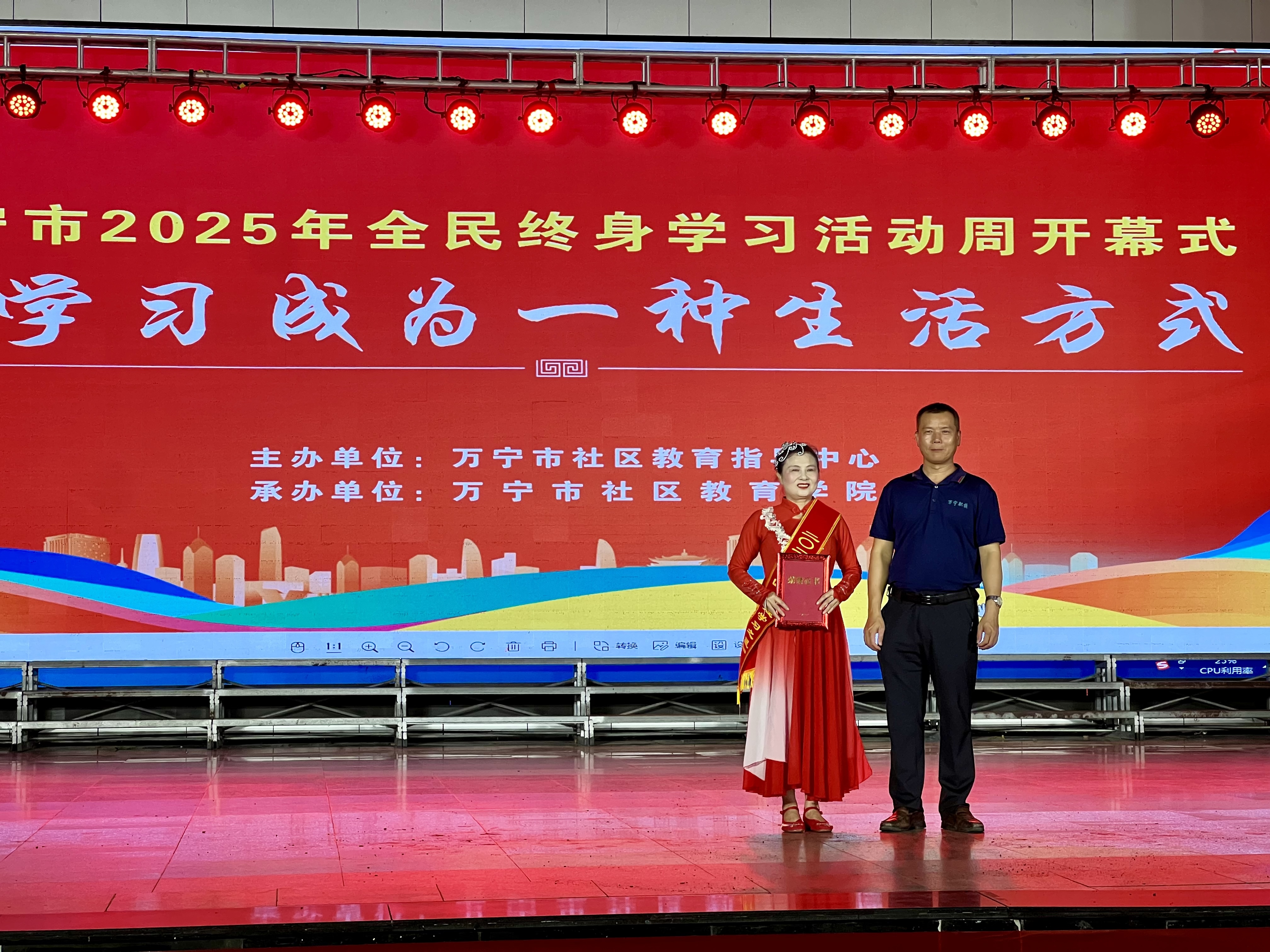 活动还为获得“全国百姓学习之星”称号的李琴同志颁奖。李琴作为万宁市老年体育协会广场舞工作委员会副主任,多年来坚持学习,先后考取广场舞二级教练员及社会体育指导员资质,创编了《中国美》《山兰情歌》等多部融合地方特色的优秀作品,带领团队在省市级比赛中屡获佳绩。