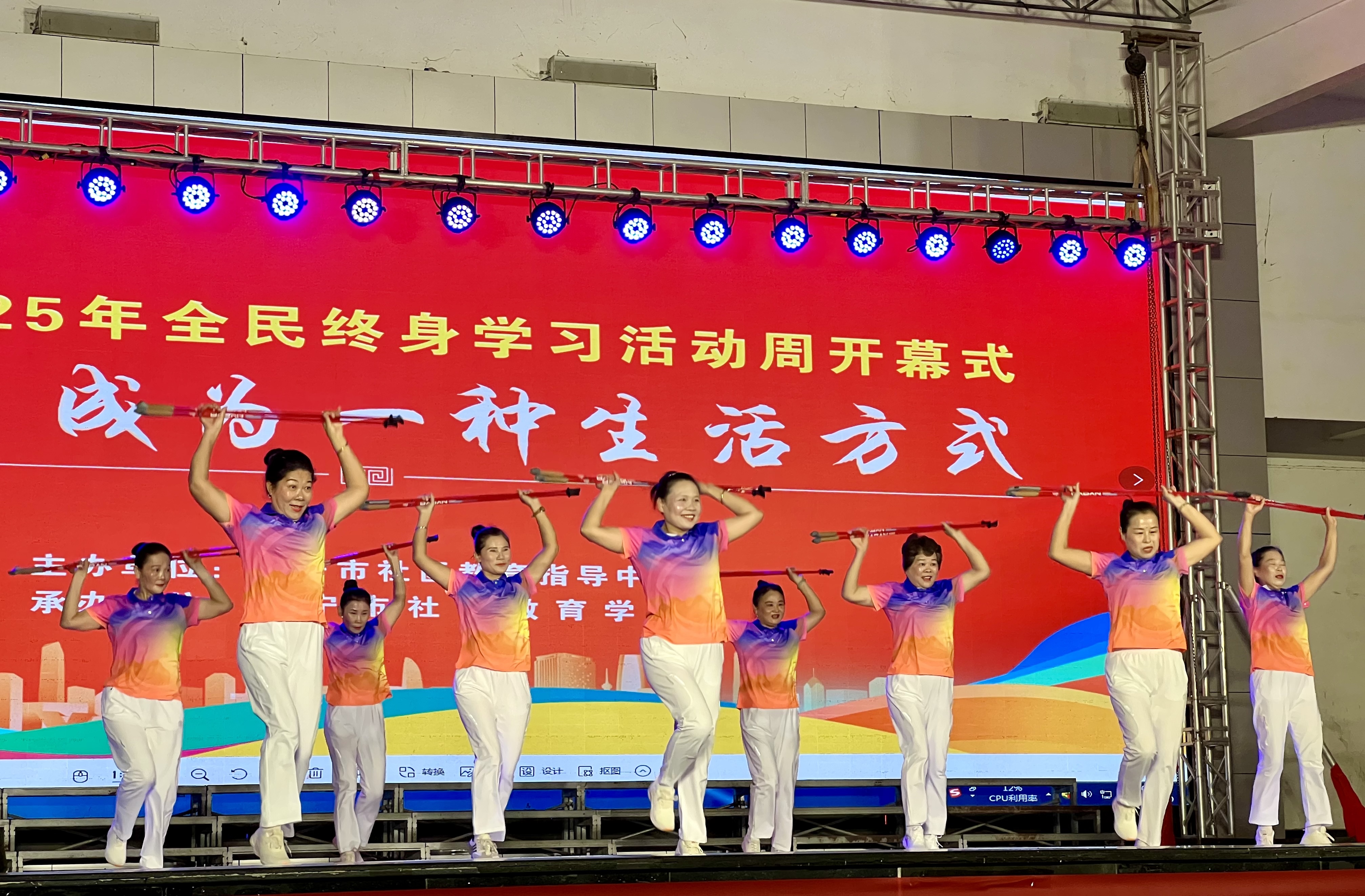 活动在富有传统文化特色的醒狮点睛仪式中拉开帷幕。来自市老年体育协会、市退休教师协会、市老年大学等单位的表演团队,相继献上了《幸福中国一起走》《太极功夫扇》《二十四式太极剑》《侨乡舞动》《久久不见久久见》等十余个精彩节目。演出不仅从不同角度展示了市民在艺术、体育等领域的终身学习成果,更展现了他们健康向上的精神风貌,生动诠释了“老有所学、老有所乐、老有所为”的生动图景,让观众深切感受到终身学习为生活带来的色彩和活力。