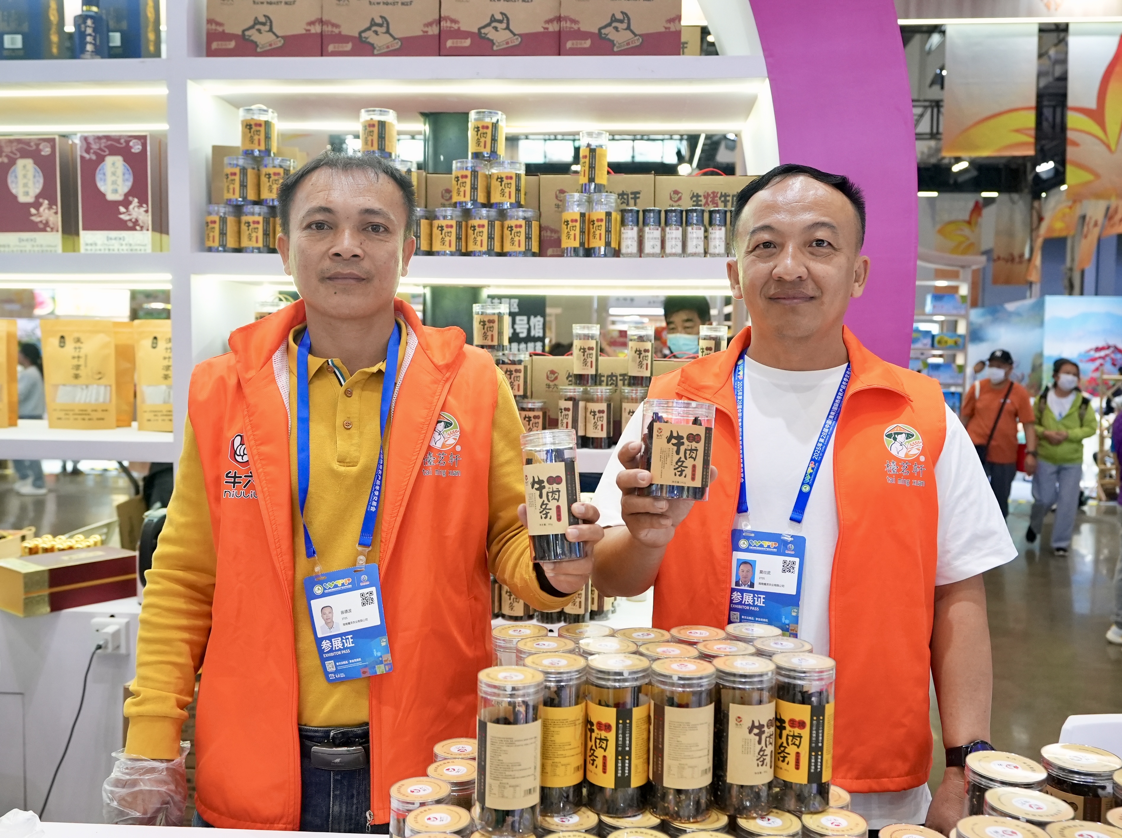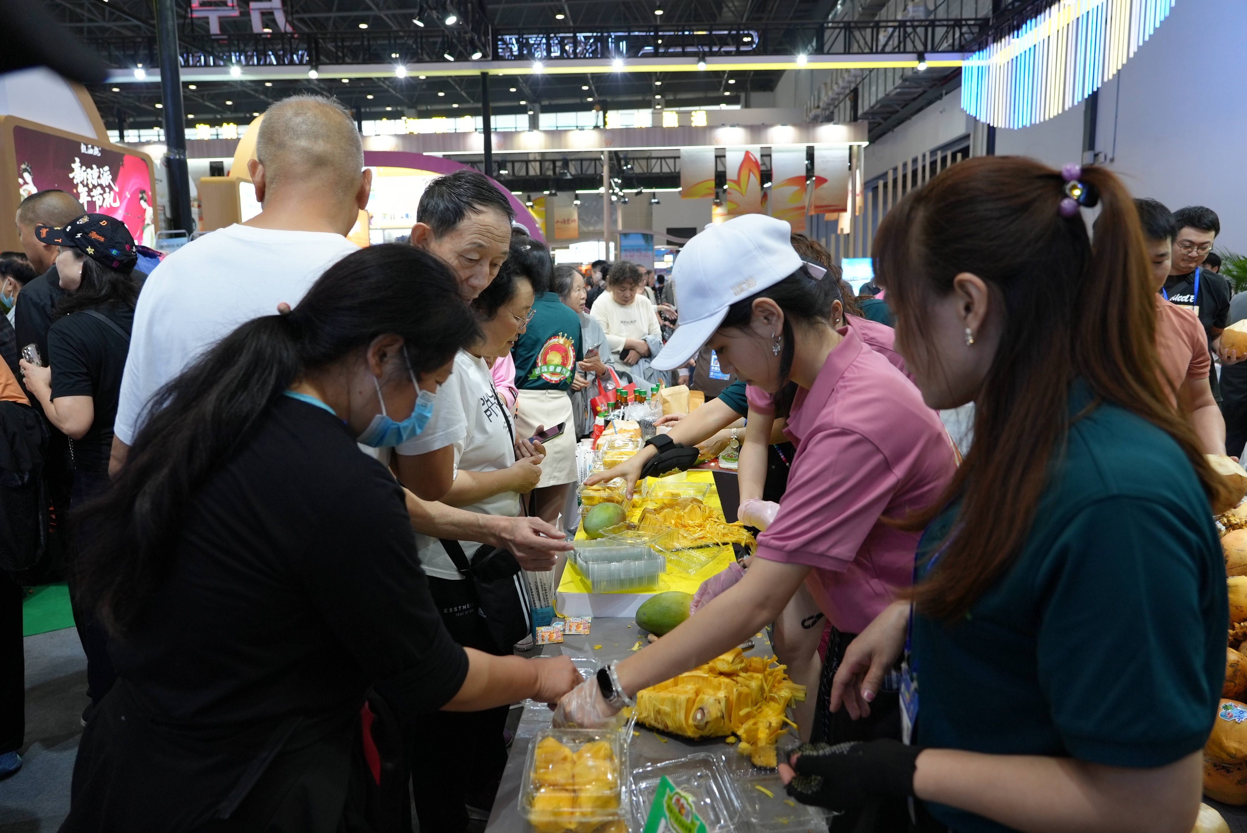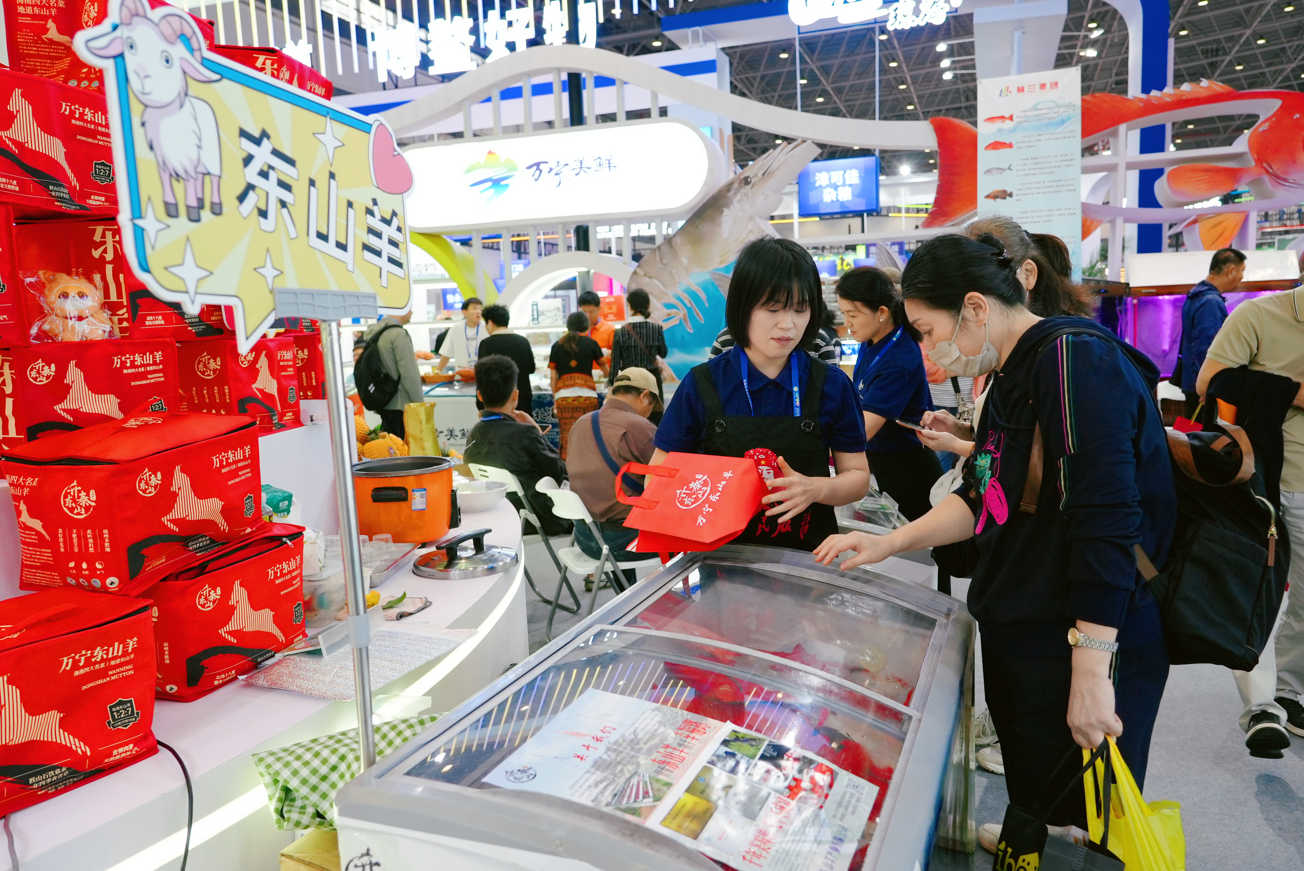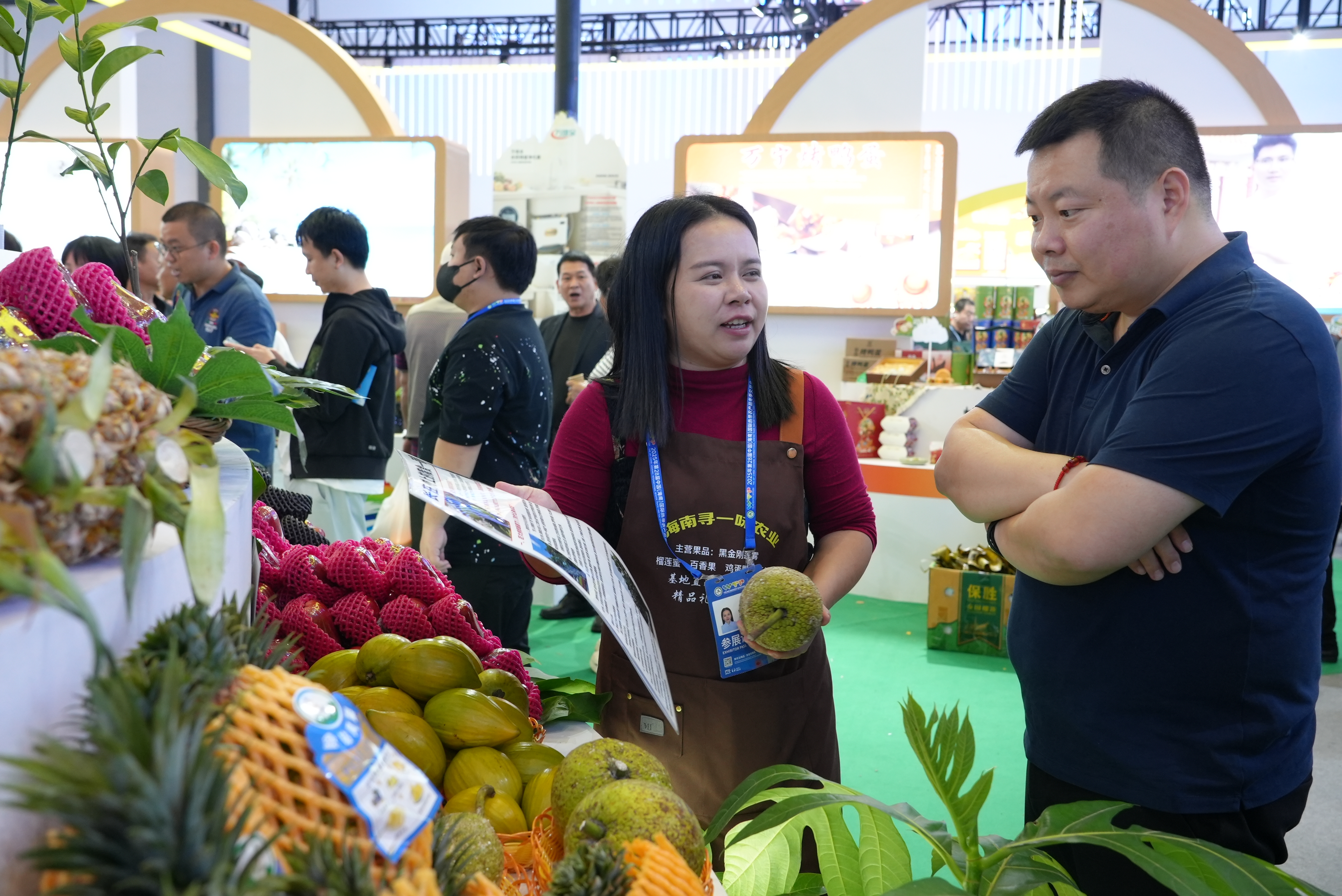 从和乐粽、东山羊速冻产品、榴莲蜜、斑斓粉等特色物产,到椰壳文创、冻干食品等深加工产品,此次万宁参展产品覆盖农业全产业链,琳琅满目。