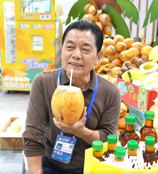 “以前很少接触金椰子,尝了以后特别好喝,比那个一般的椰子要好多了。我已经买了一些寄回家,让家里人也尝尝海南金椰子的味道。”来自河南的观众高巍品尝后赞不绝口。