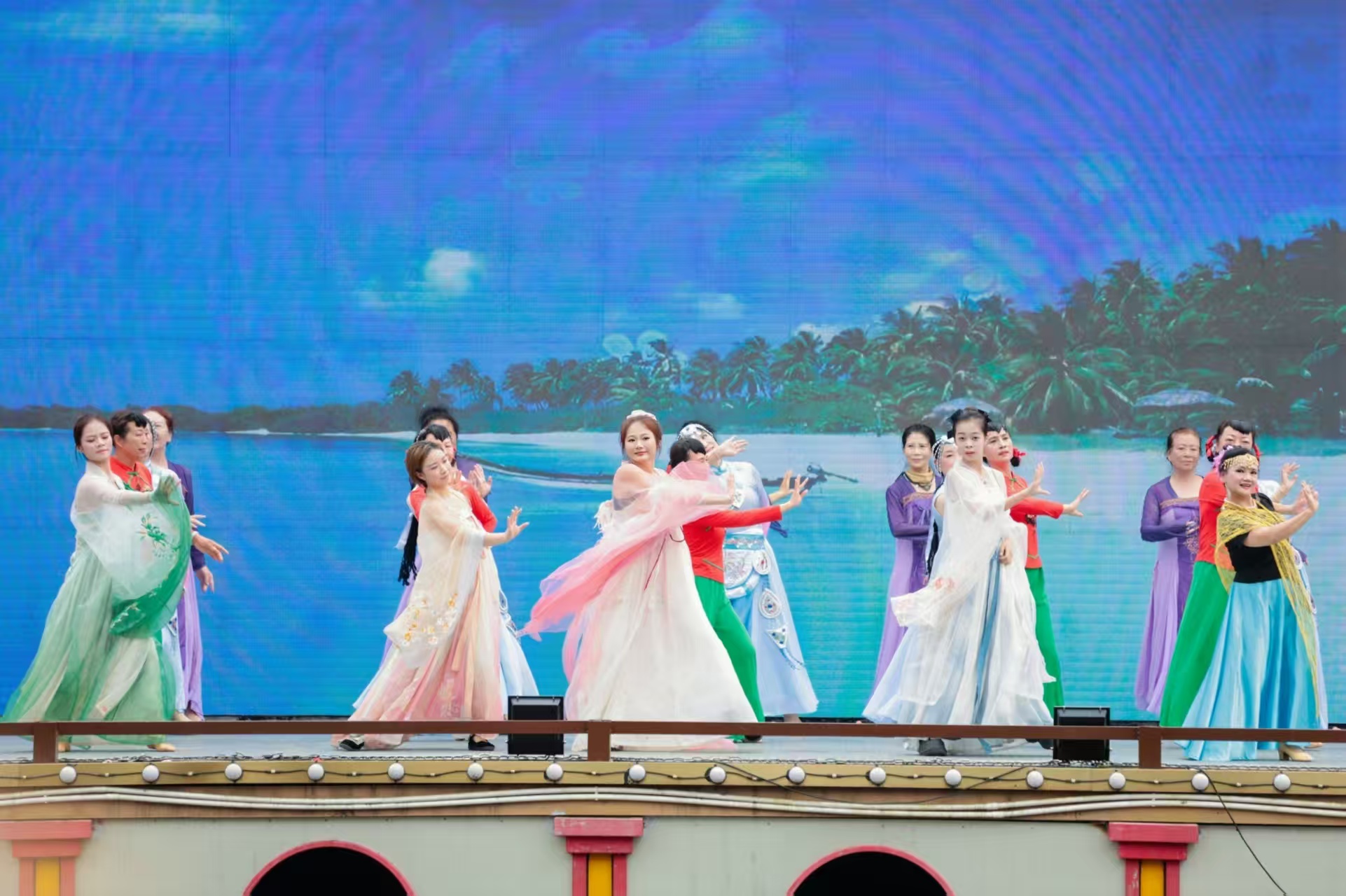 活动现场花灯璀璨、咖香四溢。当天白天,四大篇章文艺展演轮番上演,舞龙击鼓气势昂扬,情景短剧《南洋回声》再现归侨创业故事,印尼舞、弗拉明戈等异域舞蹈尽显侨乡魅力,互动竹竿舞带动全场氛围。咖啡灯谜喜乐会趣味十足,谜面融合咖啡知识、侨乡历史与自贸港元素,游客在猜谜中感受文化乐趣。精彩纷呈的活动内容让全国各地游客纷至沓来,聚集享受元宵节休闲时光。