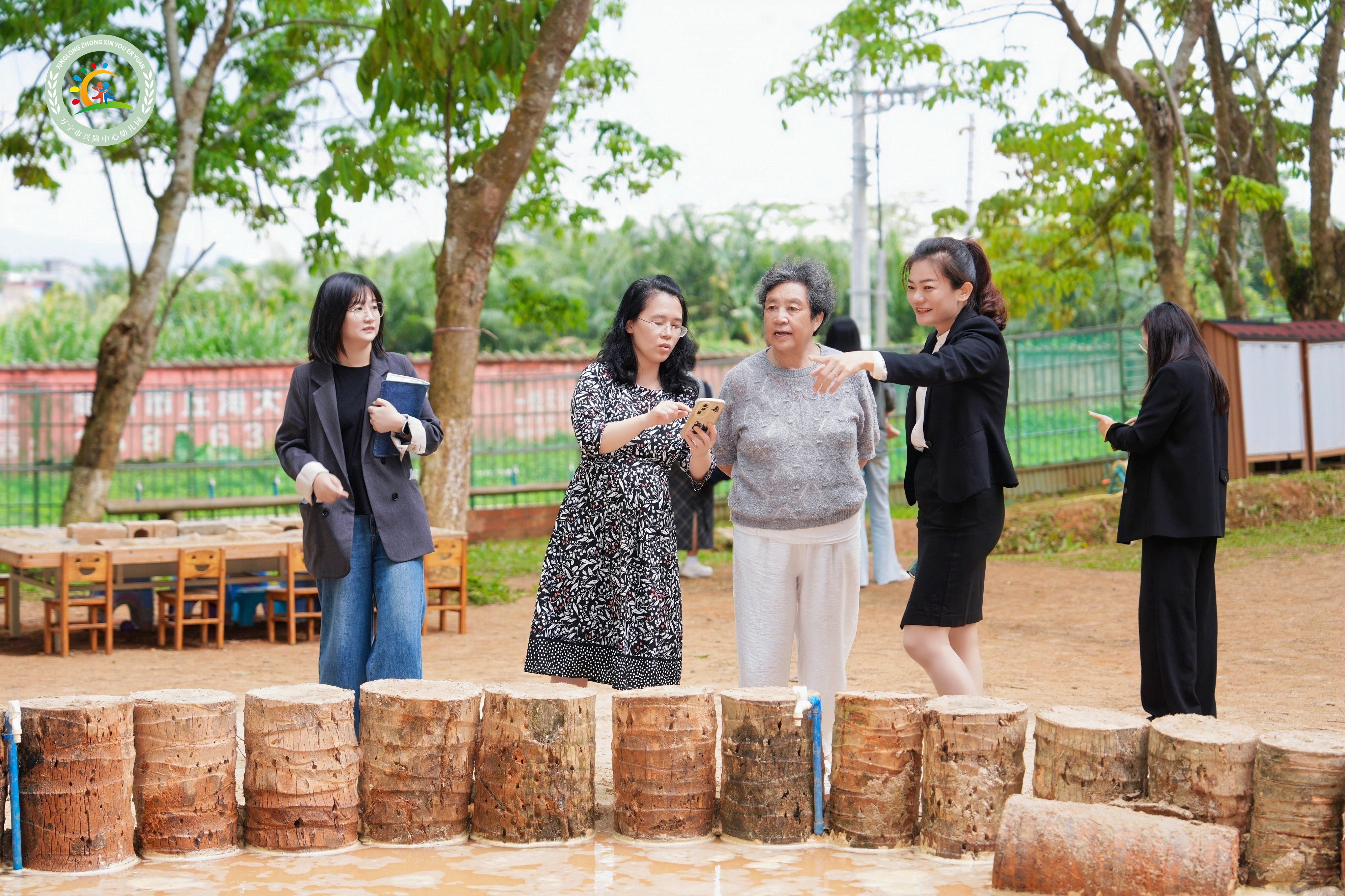 2024年10月,兴隆中心幼儿园把后山封闭的荒地进行扩建,打造出十亩原生态户外场地,未做过多的硬化,而是保留了原有的高坡、低坡、植被,因地制宜规划出泥坑区、水渠区、野战区、攀爬区、表演区、高坡滑行区等12个幼儿游戏区域。随处可见的橡胶木块、椰子树干等低结构游戏材料,让孩子们真正走进自然,回归自然教育。