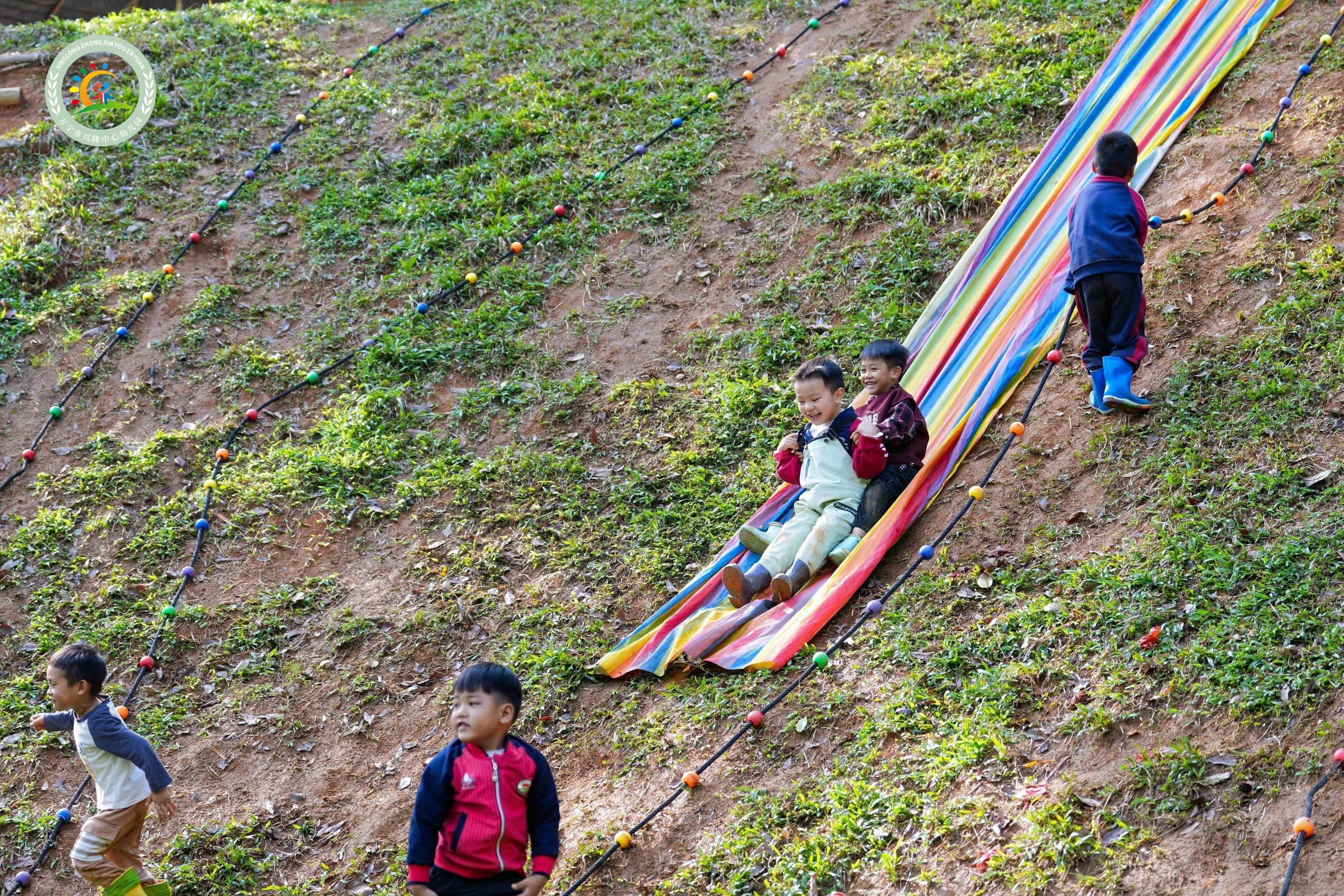 3月25日上午,兴隆中心幼儿园后山的“丛林探险园”里,欢声笑语回荡在林间。泥渠里,孩子们踩水嬉闹;表演区,小朋友们快乐“过家家”;高坡上,孩子们欢呼滑行......原生态的自然环境里,没有精致的硬化场地,却藏着无限的成长可能。